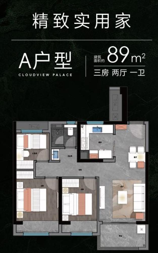 3室2厅1卫 建面89m²