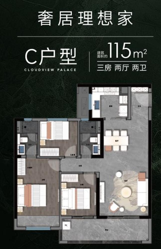 3室2厅2卫 建面115m²