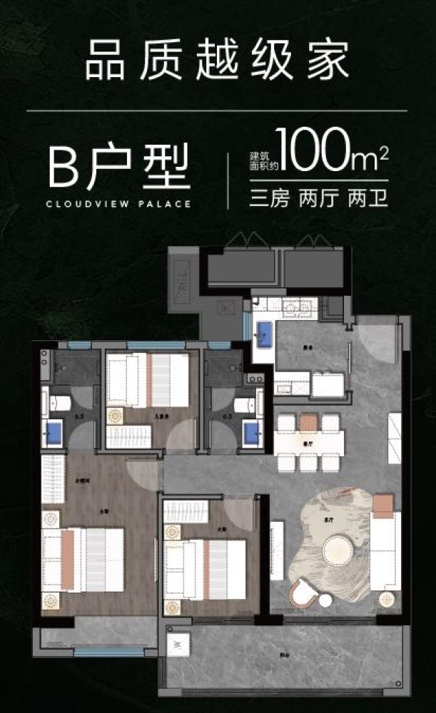 3室2厅2卫 建面100m²